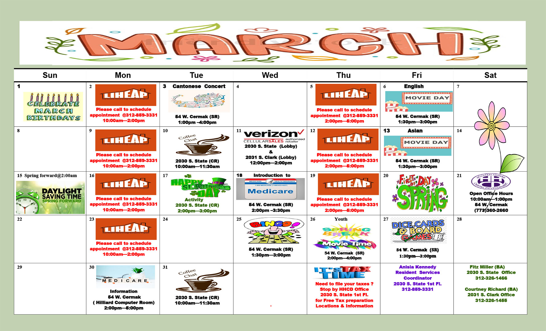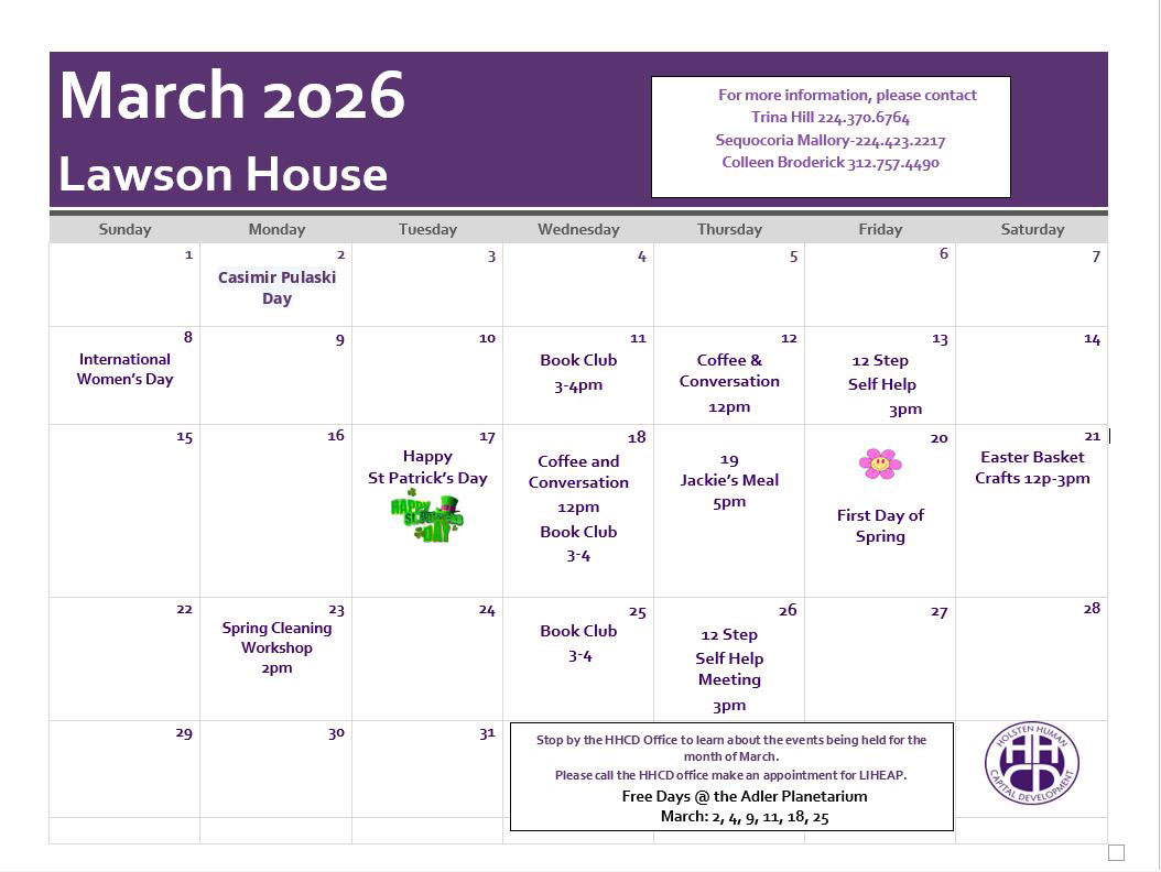• HHCD offers free counseling services. Please call 312-858-7420.